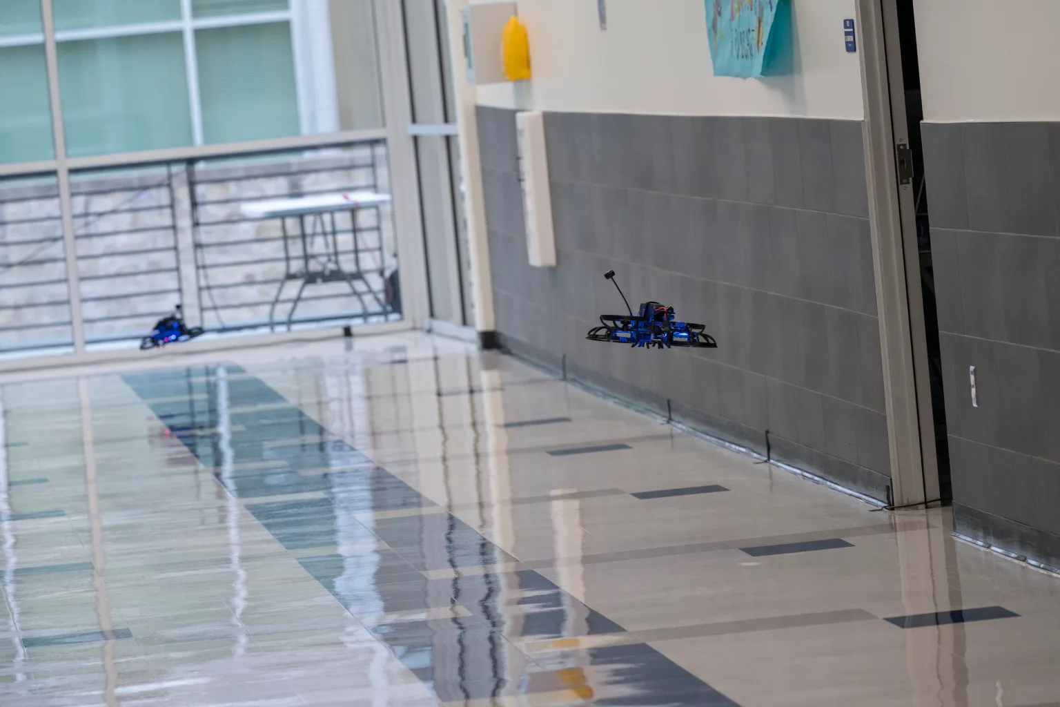 Drones search room to room for a target during a demonstration of Campus Guardian Angel.